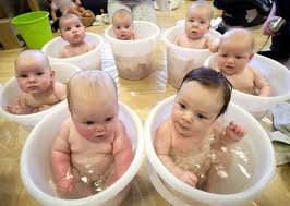 O ambiente do útero é um meio aquoso, num lugar fechado, escuro, quente, seguro e tranquilo, e quando o bebê percebe que este em um ambiente claro, menos aquecido e aberto, fica tenso e cai no choro. Então uma forma bem simples pode reproduzir um pouco aquela fase aconchegante do bebê dentro da barriga da mãe é o banho de balde.