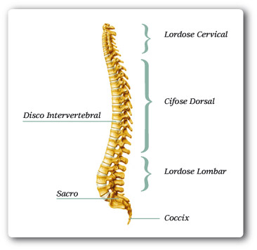 A coluna vertebral é composta por 24 vértebras, as curvaturas fisiológicas (naturais) são: