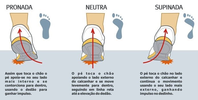 Durante a caminhada e/ou na corrida, é normal o pé realizar supinação, neutra e pronação, sendo que o prejudicial é o excesso destes movimentos. A altura do solado do tênis na região do calcanhar deve ser entre 2 a 3 centímetros aproximadamente, se a altura do solado for menor ou maior do que esta, ocorre aumento da prono e supinação predispondo a entorces do tornozelo.